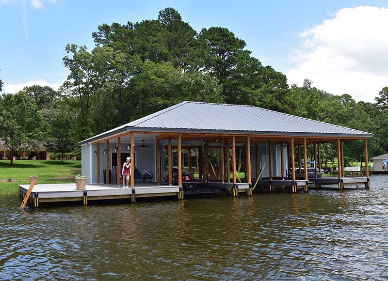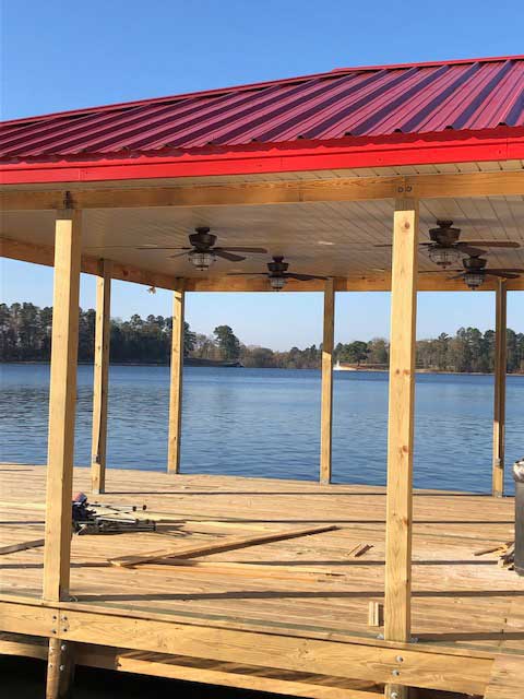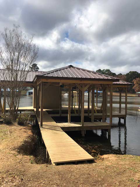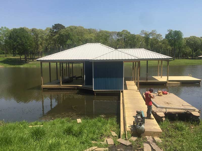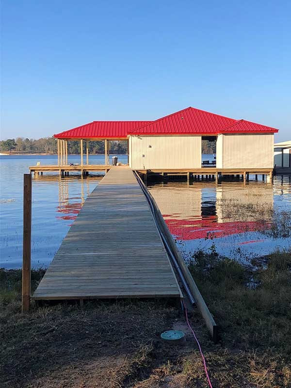 Get a completely custom structure made for your boat with every specification built to meet your needs. No job is too big or too small for the team at Hanks Construction. We have been in business since 1990 and can design, build, and install man cave boathouses, large piers, marinas, and more of any size!